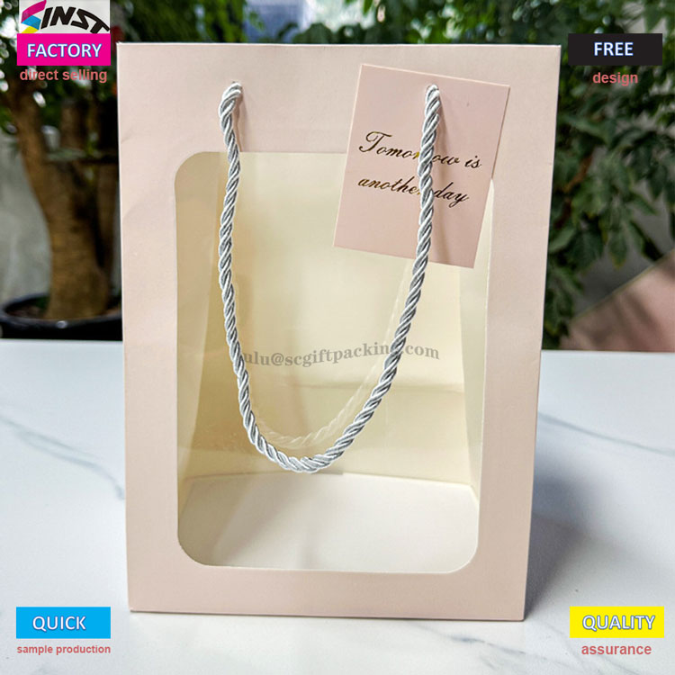 Ce sac fourre-tout à fleurs combine parfaitement l'esthétique et la pratique. La conception de fenêtres transparente permet une présentation intuitive des cadeaux, créant une expérience visuellement attrayante pour les clients, ce qui leur permet de sélectionner plus précisément les éléments dont ils ont besoin. Le sac fourre-tout du bouquet de fenêtre dispose d'une poignée à trois brins détachable en haut pour un transport facile et peut être détaché pour accueillir d'autres articles. C'est un moyen idéal pour améliorer le style de divers articles, notamment des articles culturels et créatifs, des produits de beauté et des emballages de desserts! Profitez d'une réduction de 10% sur les commandes de plus de 10 000 pièces, faisant des achats en vrac une bonne affaire. Il est parfait pour attirer l'attention pendant le marketing des fêtes ou pour les ventes de tous les jours.
