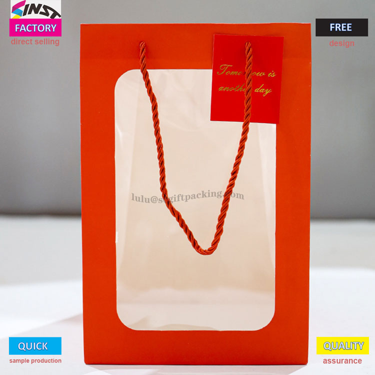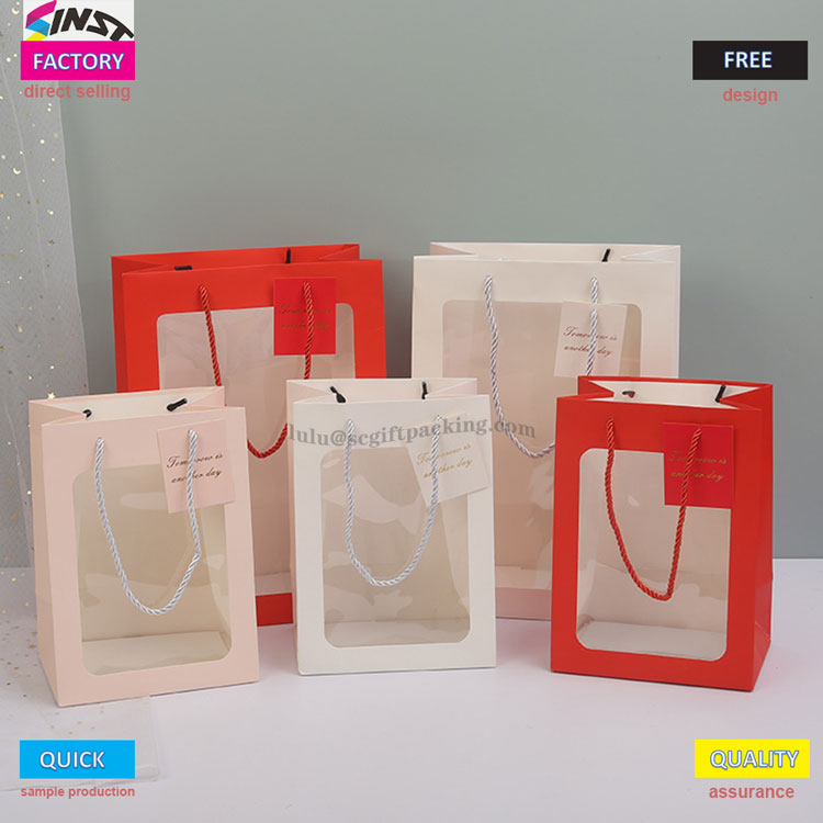 Avez-vous peur d'ouvrir des boîtes aveugles lorsque vous donnez des cadeaux? Ce sac à main est livré avec une conception de fenêtres transparente, qui permet de présenter clairement le contour des cadeaux et offre une poignée confortable, ce qui en fait un point fort visuel; La conception transparente des fenêtres en PVC peut présenter de délicieuses créations et des cadeaux tels que des gâteaux, des cookies, des macarons, etc. Le sac fourre-tout d'ouverture de Bouquet Window peut également présenter vos beaux produits en famille et amis avec des cartes personnalisées. Les bénédictions manuscrites remplissent instantanément l'atmosphère d'une cérémonie exclusive. Des cadeaux pour les anniversaires, les vacances et les anniversaires peuvent être offerts à la fois avec l'apparence et l'intention. Bien sûr, le sac fourre-tout à fleurs est également un bon choix pour le stockage quotidien.